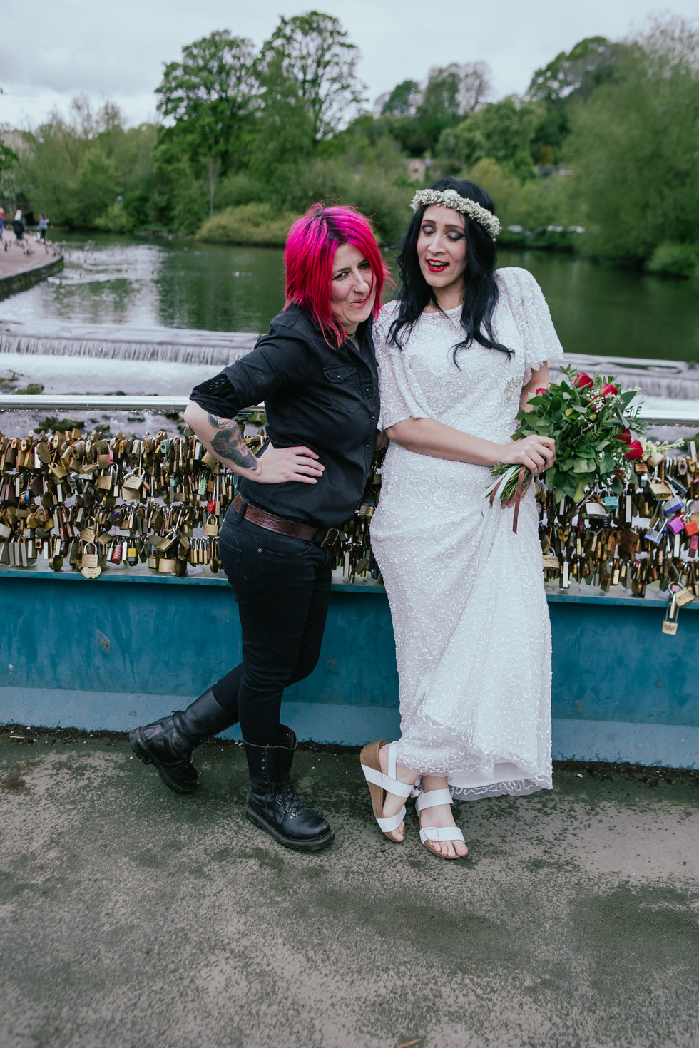 Oh silly rain! You tried to get us! You tried so hard but you couldn’t keep it up, could you! These two forces of nature out- shone your miserable wetness. Yes, you took a bride down to the ground, into the muddy depths of hell. But her new wife was there to laugh and insist a photo was taken, before helping her back onto her boots.