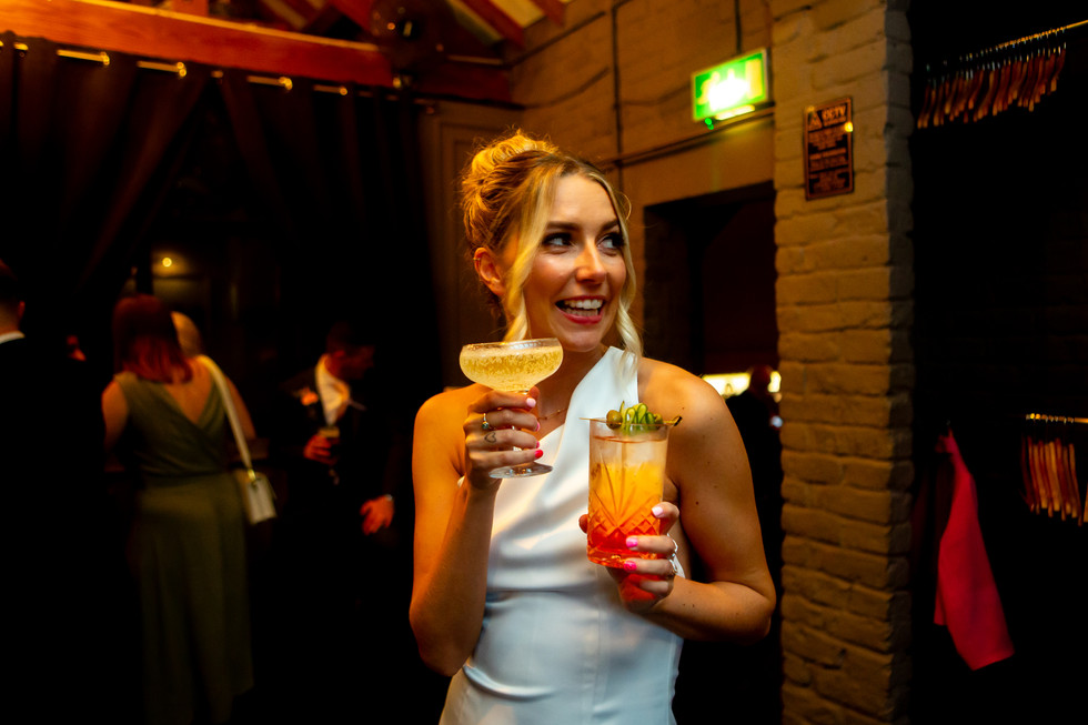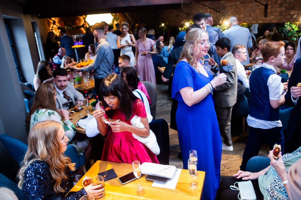 Next thing you know there’s a smiling and laughing wedding party, walking through the city streets in a delightful drizzle, towards the second venue, the stylish and super classy Castlefields Rooms, where drinks and amazing nibbles were served. The rain came down hard but only the smokers got wet, bless ‘em.